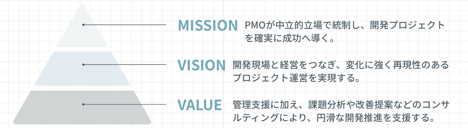 PMO人材の育成、手法・ツールの標準化を通じて、再現性のあるプロジェクト運営基盤の構築を支援します。